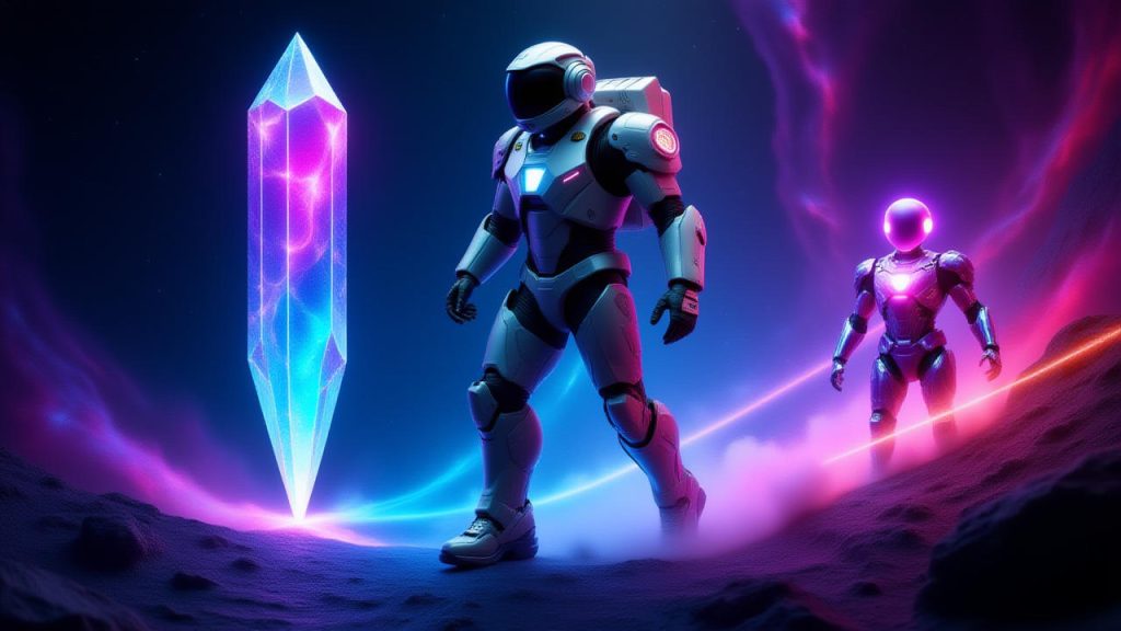 In diesem Moment tauchte Lumen auf, ein künstlicher Begleiter, geboren aus der fortschrittlichsten KI, die jemals in einer Raumstation installiert wurde. Lumen, mit einem leichten, kristallinen Schein, erschien auf dem Boden und bot ihm einen einzigartigen Leitfaden, der ihn tief in die Nebelwelt führen sollte. „Der Puls“, sagte Lumen mit einer Stimme, die wie ein sanftes Licht klang, „ist die Melodie der Schöpfung selbst. Wenn du bereit bist, wird er dir Wege öffnen, die das Universum noch nie gesehen hat.“