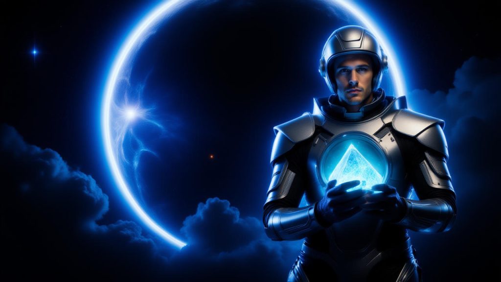 Inmitten des Lichts und der Dunkelheit traf ich auf eine Gestalt, die ich sofort als Navigatorin erkennen konnte – eine interstellare Reisende namens Lyra. Ihre Augen spiegelten das unendliche Vakuum wider, und ihr Flügel, das sie von einem leichten Plasma-Teleportationsgerät trug, schimmerte im Schein des schwarzen Mondes. Sie trat vor und legte mir ein uraltes Navigationsinstrument entgegen, einen kompakt geformten Krystall, der die Sterne in seinem Inneren zu weben schien. \”Diese Wurzel der Wege,\” sagte sie, \”ist die Schlüsselantwort auf die Frage, warum du die Sterne hören kannst.\”